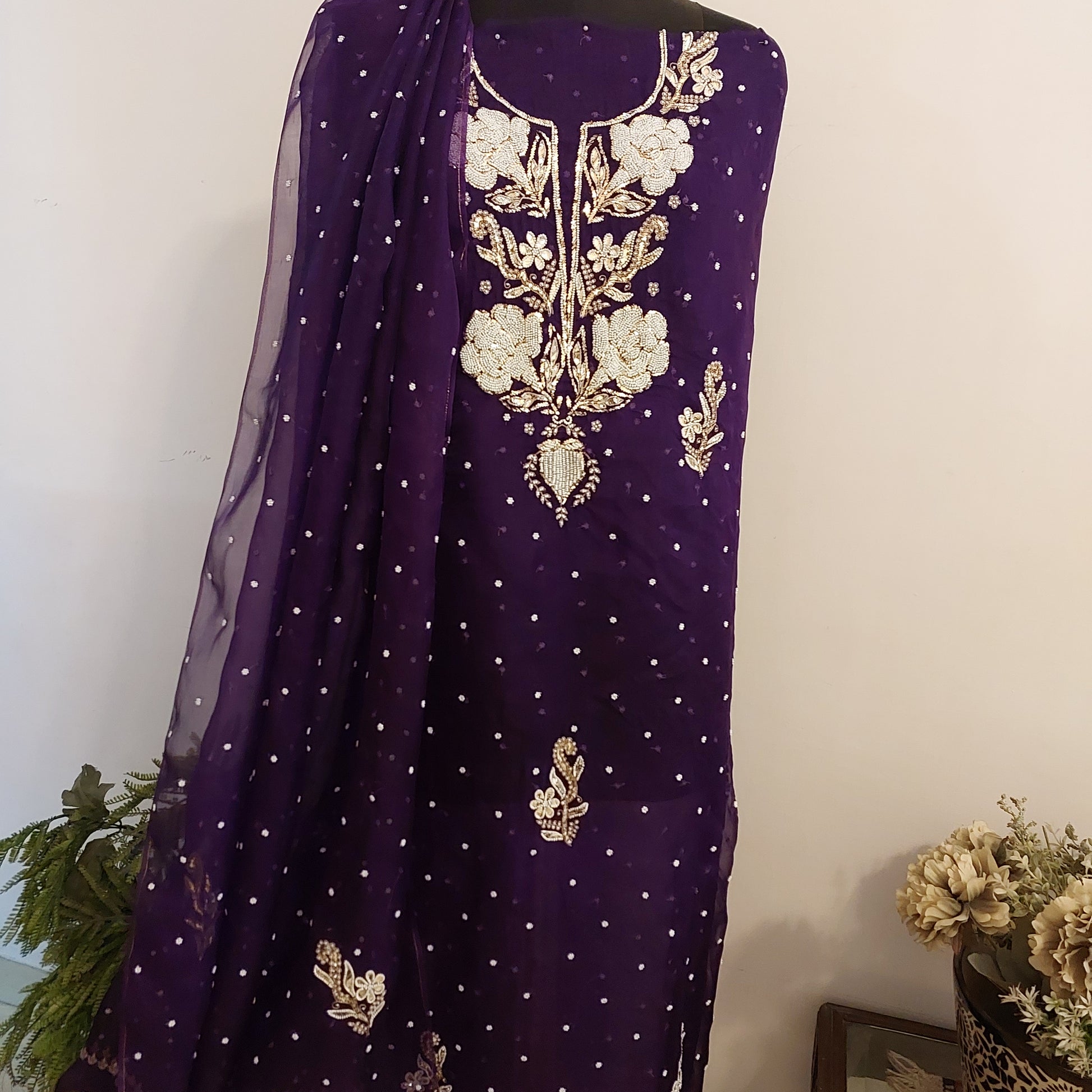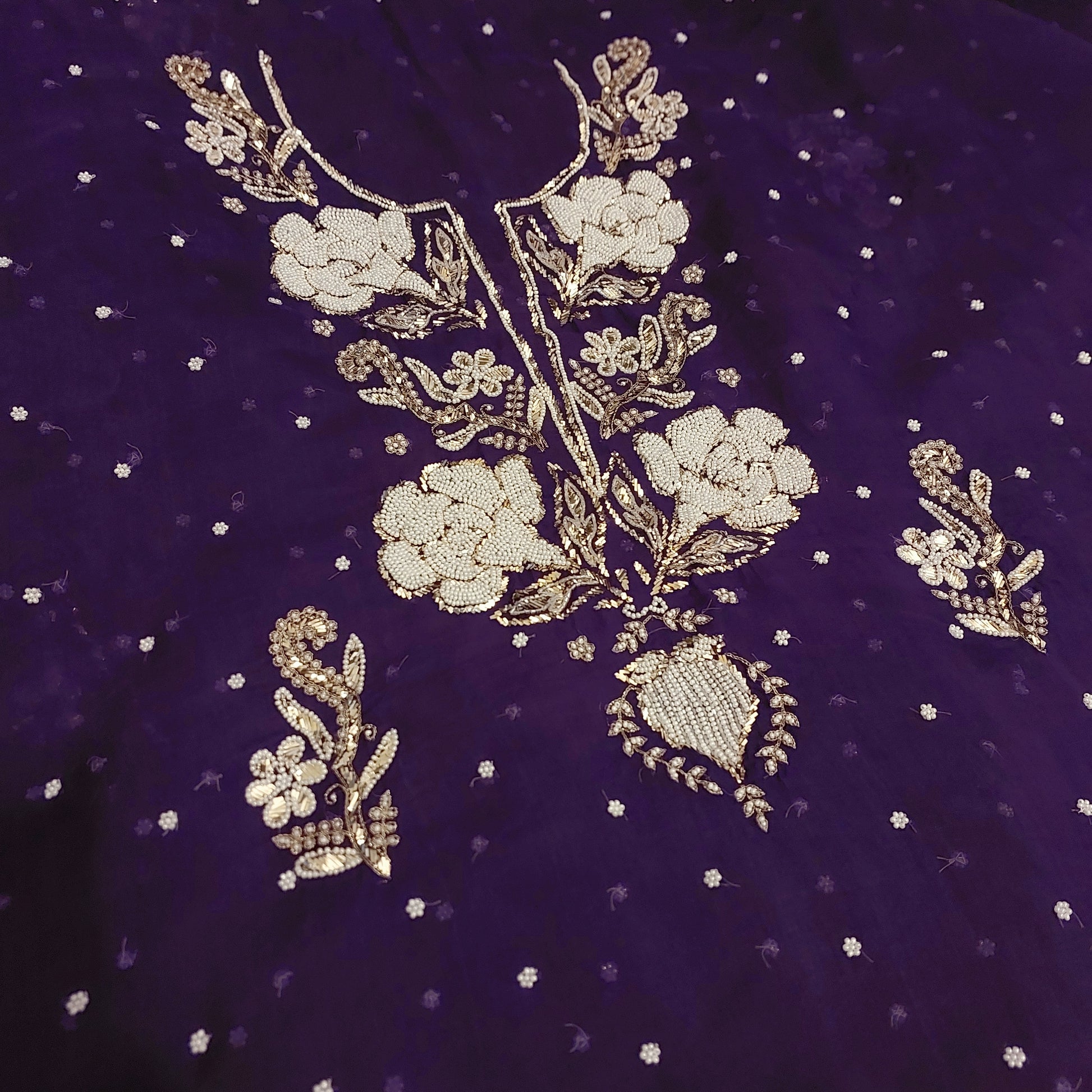 Pure organza kurta and dupatta in mukaish and pearl, cutdana etc.