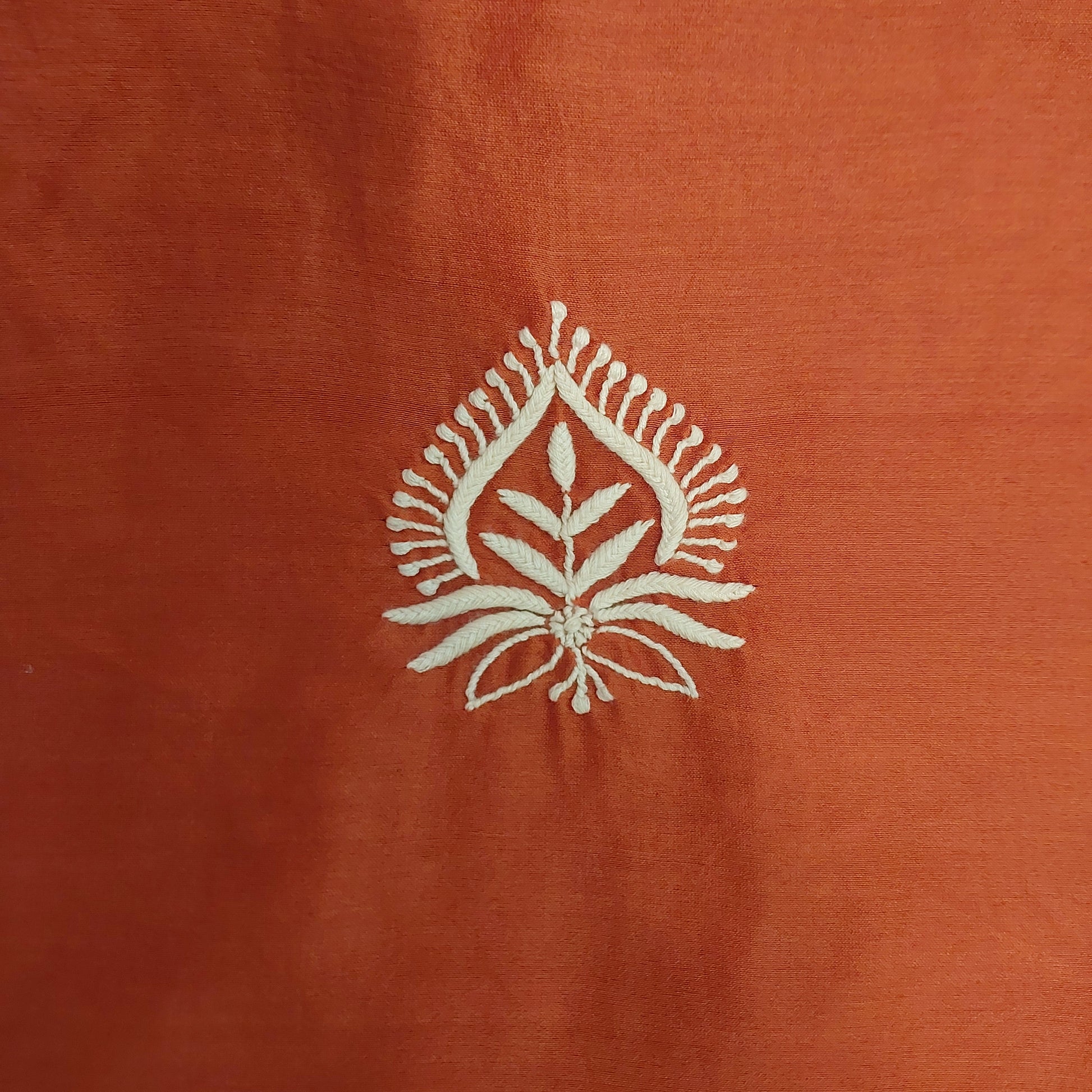 Pure chanderi silk kurta and dupatta in chikankari dyed to burnt orange color.